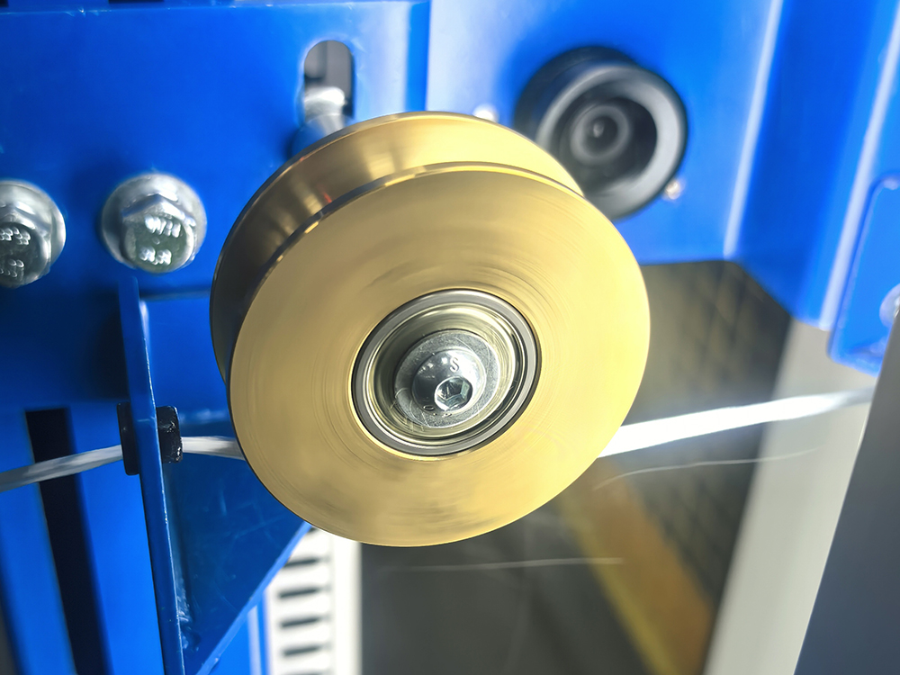 铜轮是玻璃纤维生产中的导纱轮(导向轮),核心作用是引导玻璃纤维丝束的走向、控制张力,避免丝束缠绕或断裂。