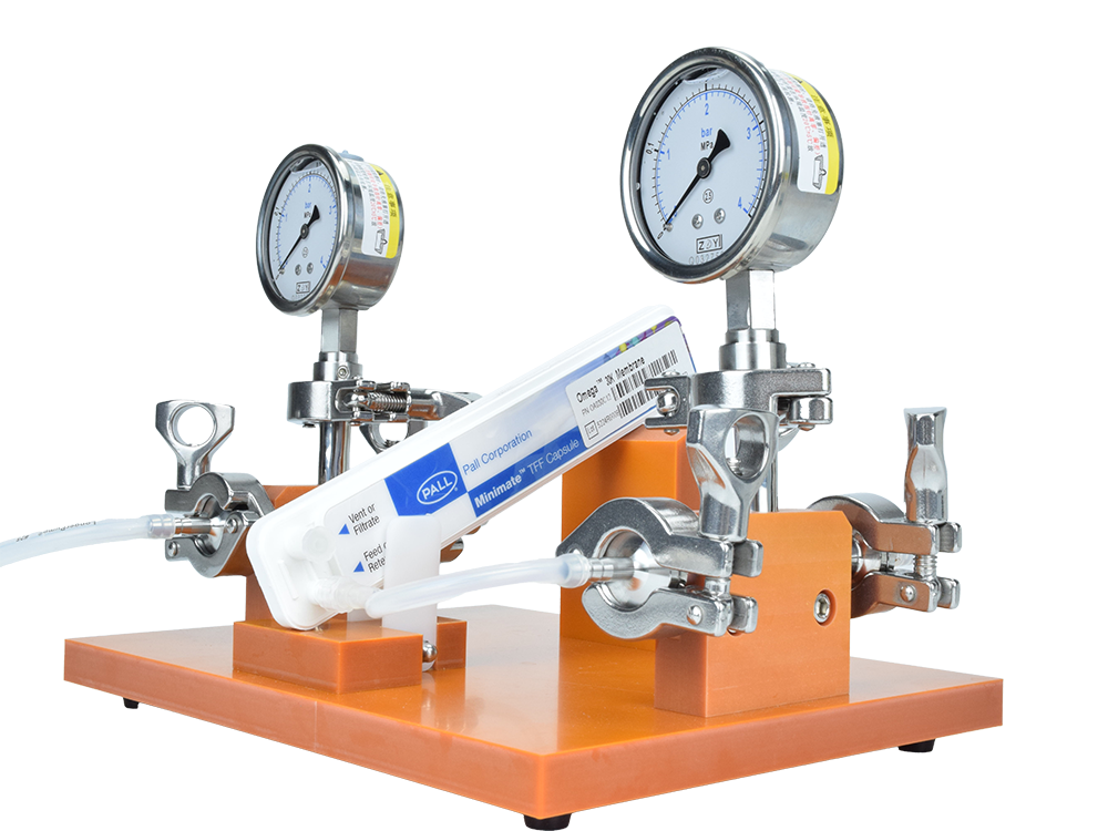 MiNi实验室切向流超滤夹具系统:包括所有快速进行切向流超滤实验的必备硬件,管路及配件,简易组装,低剪切力避免原液损伤以及降低交叉污染风险,微滤和超滤膜包安装方便快捷,多种膜包规格可选,可实现高浓缩系数。全部卫生型结构设计,易清洗,轻松维护。优秀团队技术支持,可定制的切向流系统。